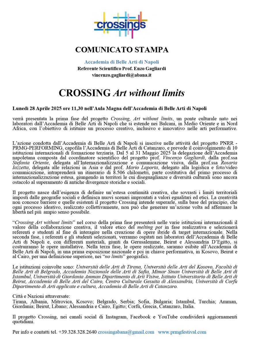Presentazione Progetto Internazionale CROSSING Art without limits