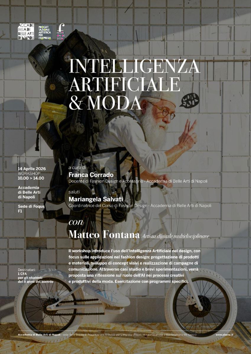 L’incontro, in programma il 14 aprile 2026 dalle ore 10:00 alle 14:00 presso la sede FOQUS dell’Accademia (Aula F1), vedrà la partecipazione di Matteo Fontana, artista digitale multidisciplinare, e sarà curato dalla docente Franca Corrado.