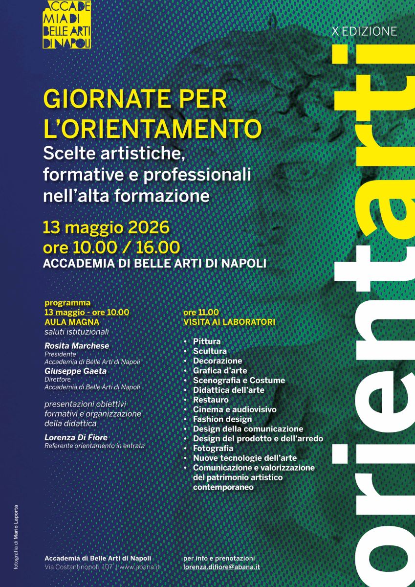Giornate per l'Orientamento scelte artistiche formative e professionali nell'alta formazione Mercoledì 13 maggio 2026 Aula Magna - ore 10.00 - 16.00