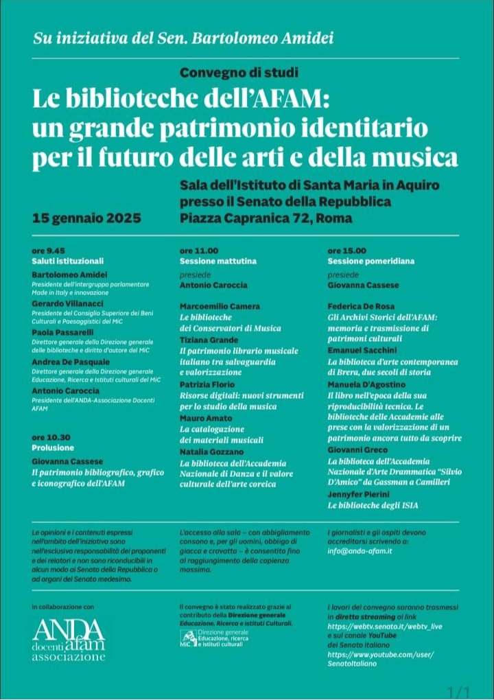 convegno di studi "Le Biblioteche dell'AFAM: un grandepatrimonio identitario per il futuro delle arti e della musica